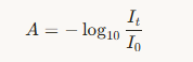 where I0 is the intensity of light entering the sample, and I is the intensity that comes out.