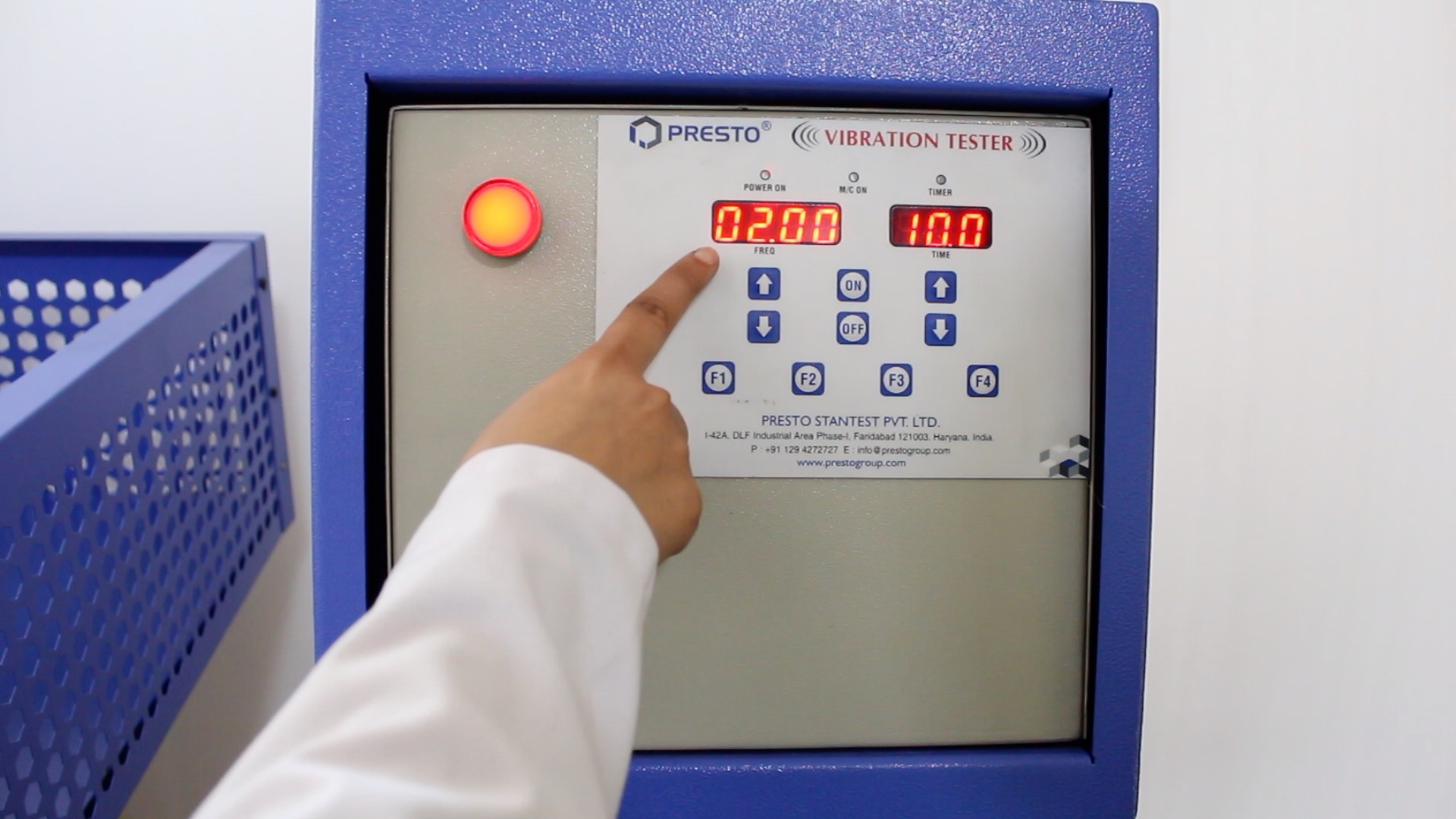 Setup: The product must be placed on the vibration table.